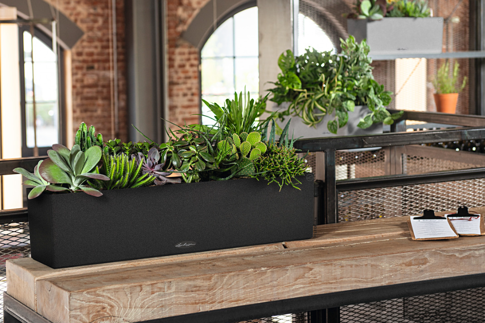 The LECHUZA classic helps make this dream come true and reliably takes care of plants with the irrigation system and water reservoir - even on hot summer days. Frequent watering is no longer necessary and, meaning that there is more time for relaxation. The removeable plant inserts with retractable handles can easily be planted on the ground or on a table and then inserted into the pre-assembled boxes.