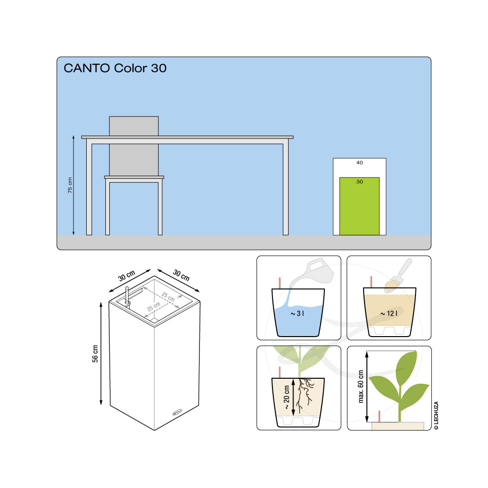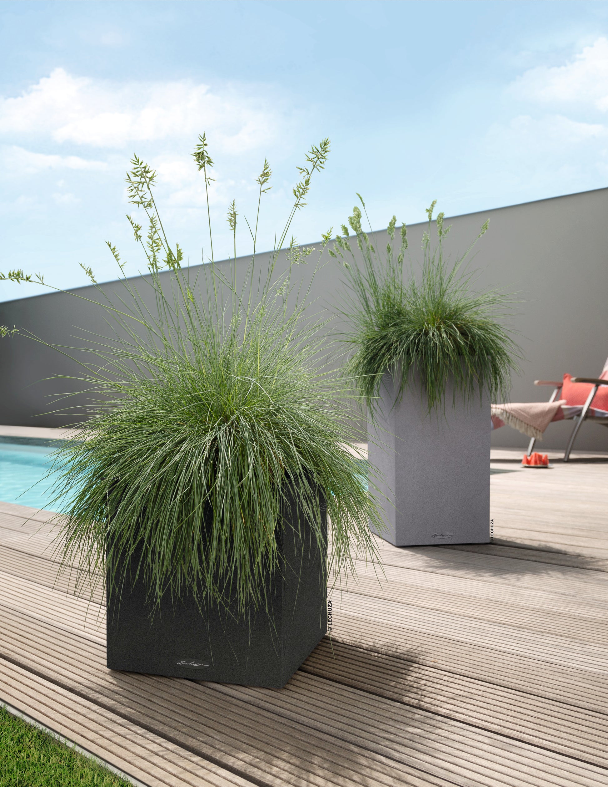 If you like a clear design you will love the CANTO Stone. The rough natural stone look in three different colors creates a wonderful contrast to lush greens and colorful flowers. The CANTO Stone cube and column planters have the same dimensions, so you can easily use the same planter liner in both models.