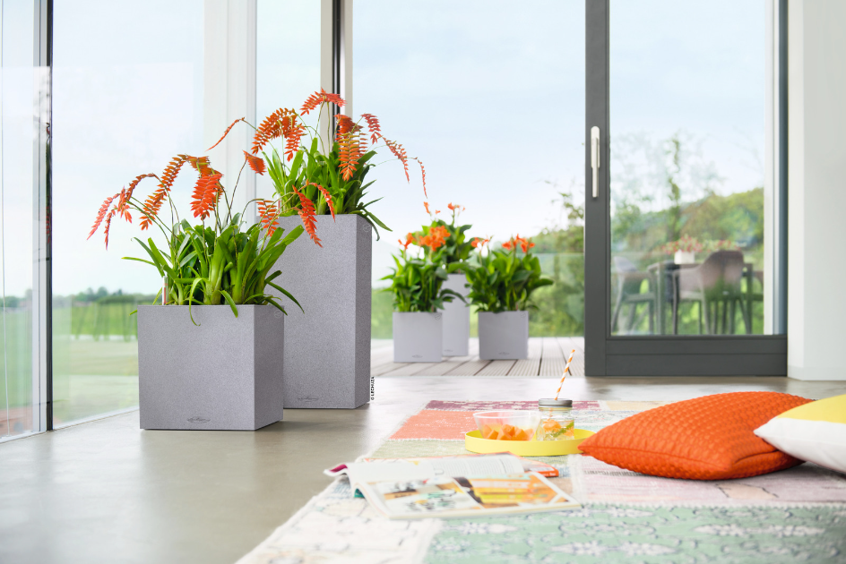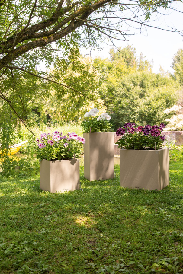If you like a clear design you will love the CANTO Stone. The rough natural stone look in three different colors creates a wonderful contrast to lush greens and colorful flowers. The CANTO Stone cube and column planters have the same dimensions, so you can easily use the same planter liner in both models.