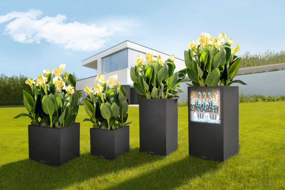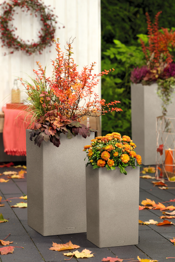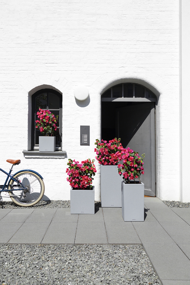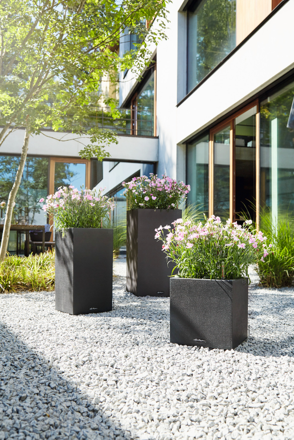 If you like a clear design you will love the CANTO Stone. The rough natural stone look in three different colors creates a wonderful contrast to lush greens and colorful flowers. The CANTO Stone cube and column planters have the same dimensions, so you can easily use the same planter liner in both models.