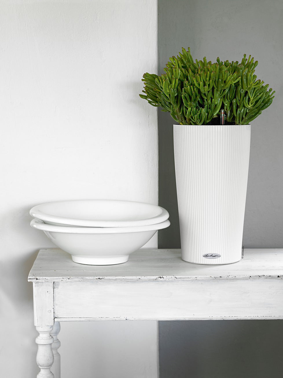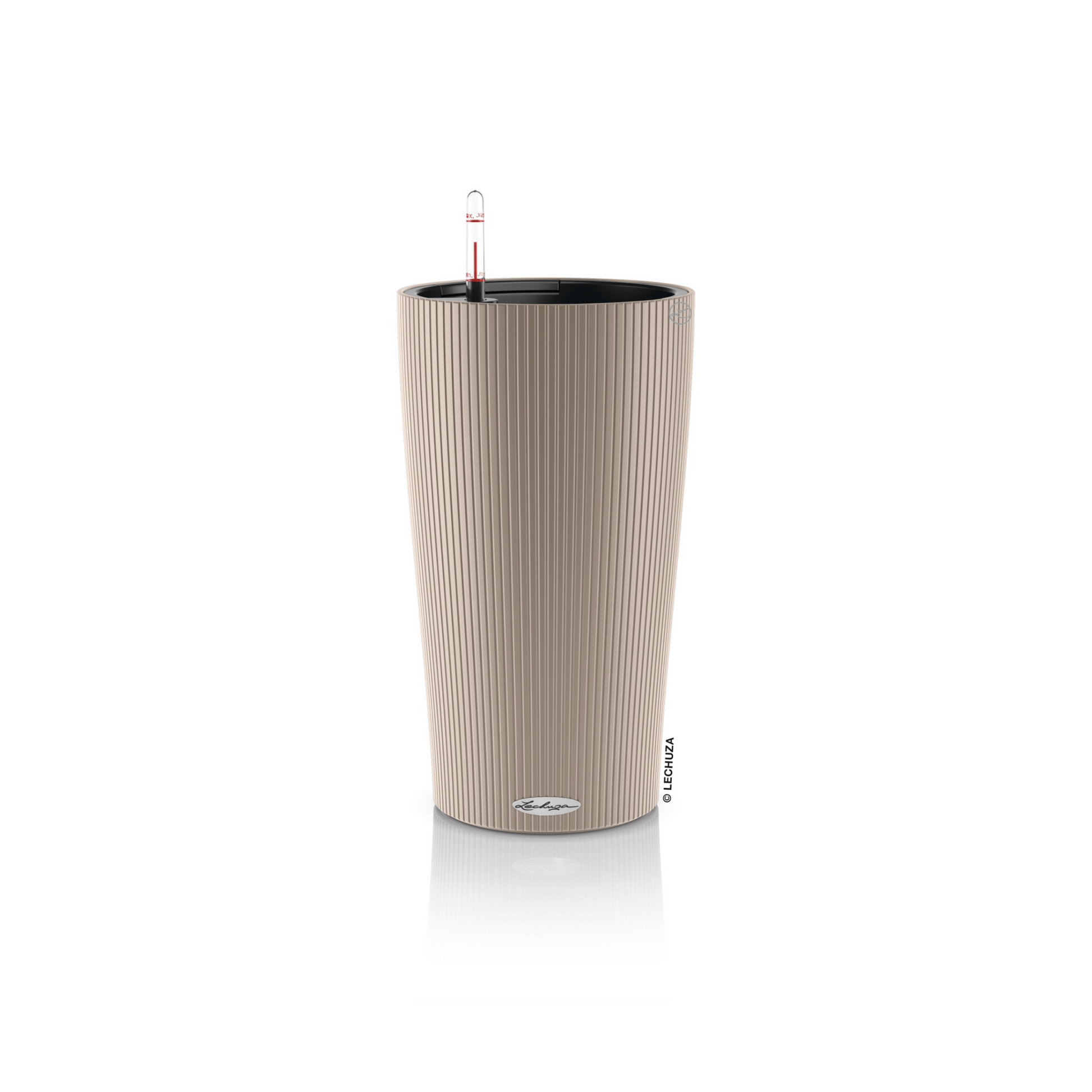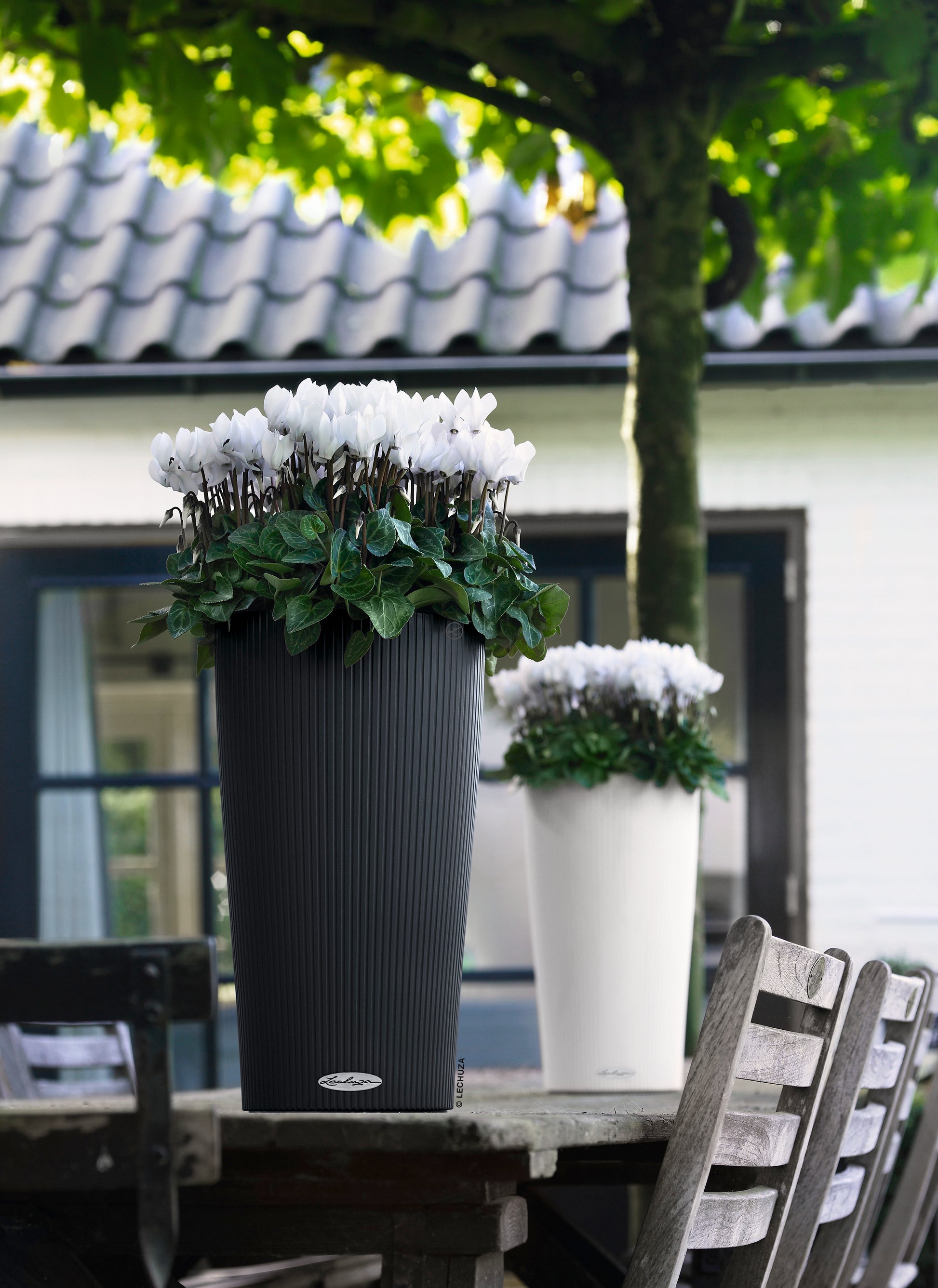 This sophisticated CILINDRO Color brings a unique pinstriped look to stylish spaces. Its minimalistic design offers fine details for an eye-catching appeal and adds a sleek touch to your everyday life. CILINDRO is equipped with a planter liner and patented carrying handles, allowing for easy transport- even for large plantings. The drain plug can be removed for excess rainwater drainage when used outdoors and the liner can be quickly switched out on the spot.