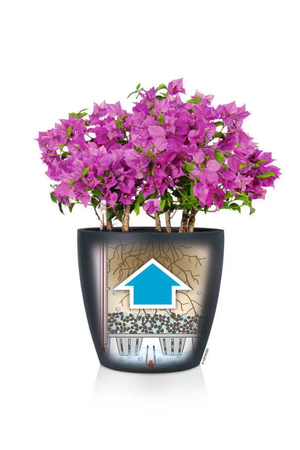The CLASSICO Color family shows off an aesthetic appearance, high-quality design and smart functionality. Thanks to the reliable LECHUZA soil irrigation system, the plants can take as much water and nutrients as and when they need it and, in outdoor areas, the removable bottom screw protects against waterlogging in heavy rain.