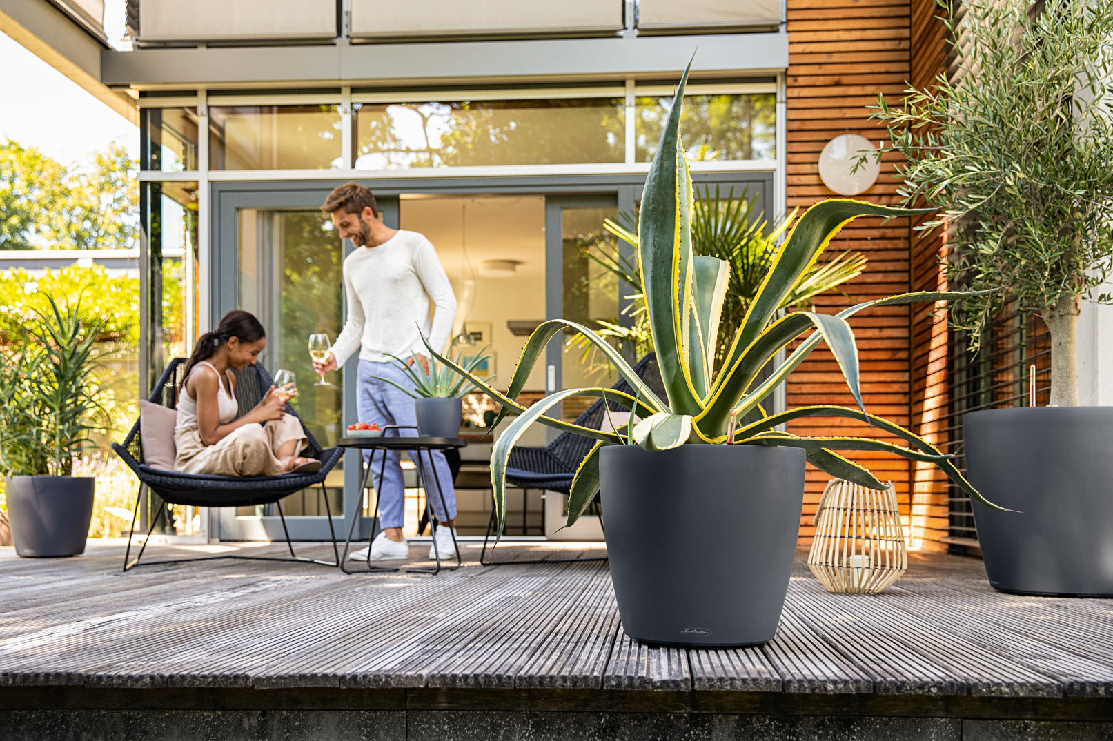 The CLASSICO Color family shows off an aesthetic appearance, high-quality design and smart functionality. Thanks to the reliable LECHUZA soil irrigation system, the plants can take as much water and nutrients as and when they need it and, in outdoor areas, the removable bottom screw protects against waterlogging in heavy rain.