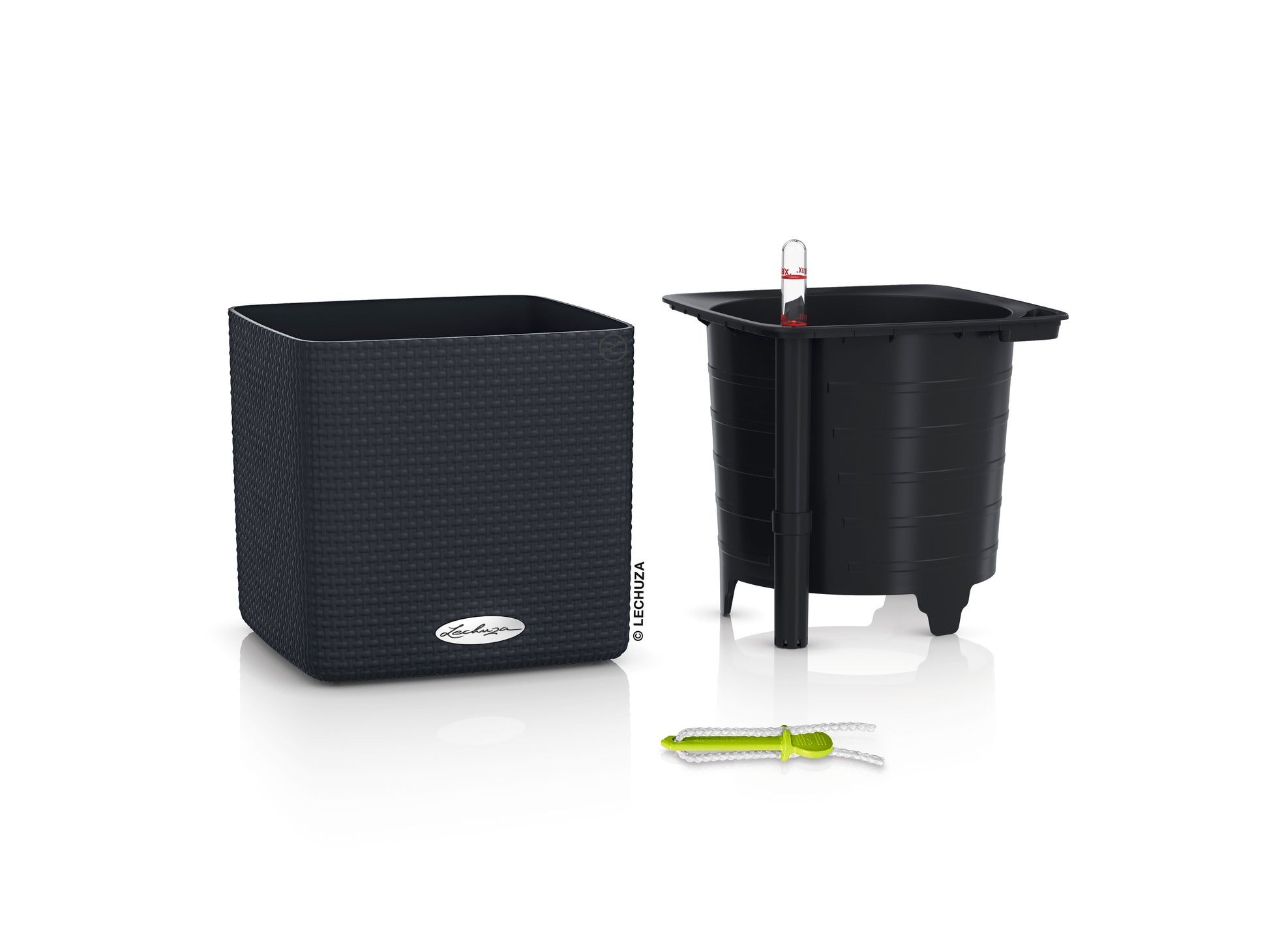 The herbs do not even have to be repotted because the LECHUZA sub-irrigation system reliably supplies the herbs in the grow pot with moisture; simply insert the stick into the herb pot from below, place it in the CUBE Color and pour. Done!