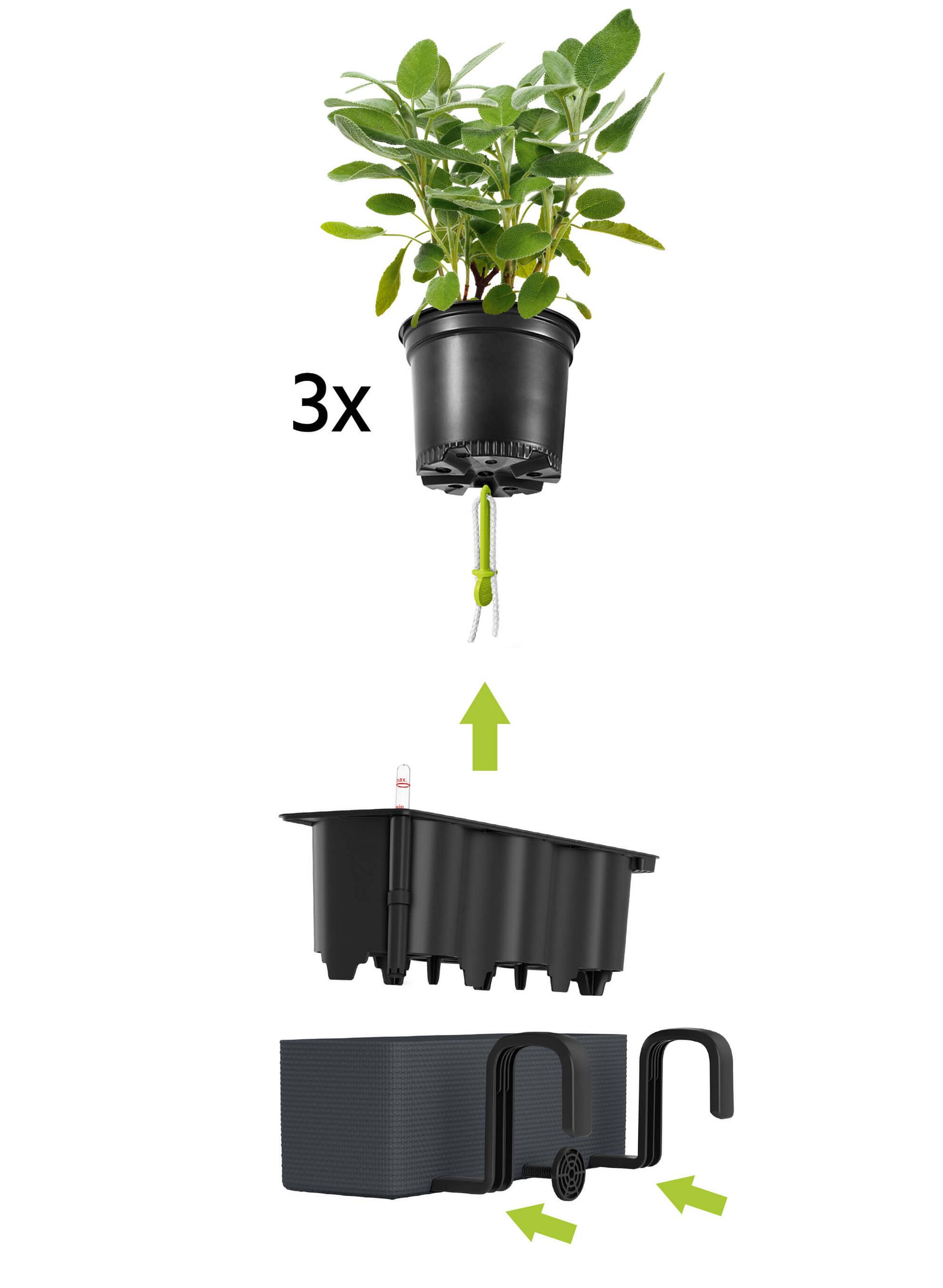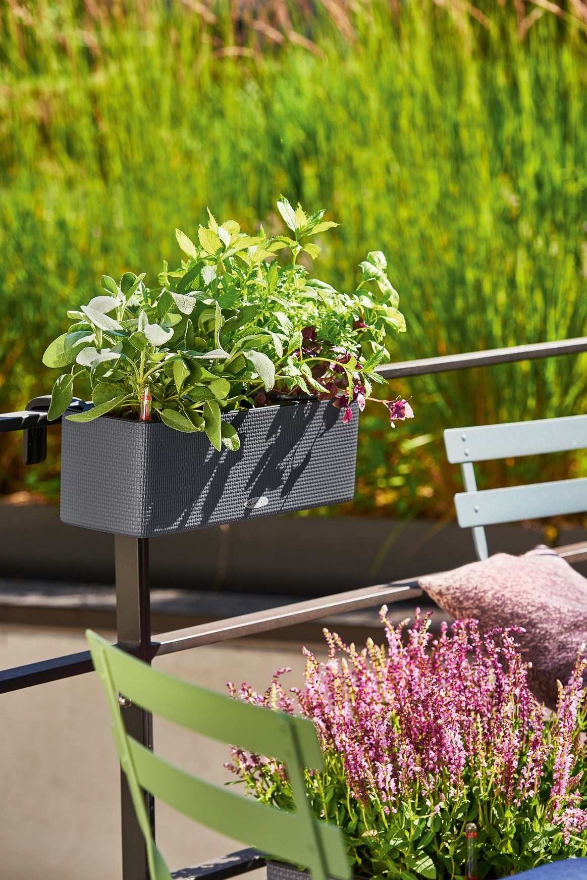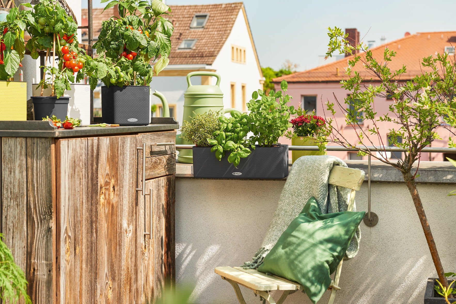 Adding greenery to the balcony has never been easier. CUBE Color Triple offers room for three grow pots and is easy to use without repotting. This speeds up planting decorative flowering plants or practical herbs. And thanks to the LECHUZA wick system they receive the right amount of water for many weeks.
