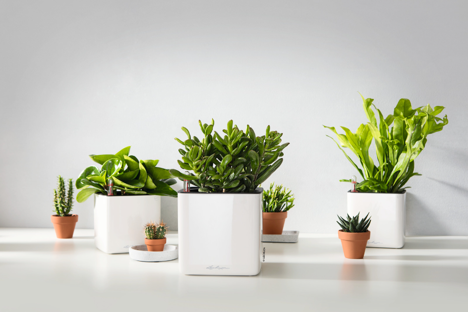 LECHUZA's Glossy Collection brings modern glamour to the living area. The planters with high-quality lacquered surfaces are gleaming eye-catchers and give rooms an elegant touch. The trend-setters not only look elegant, but are also convenient with their integrated irrigation system, which reliably takes care of the plants.