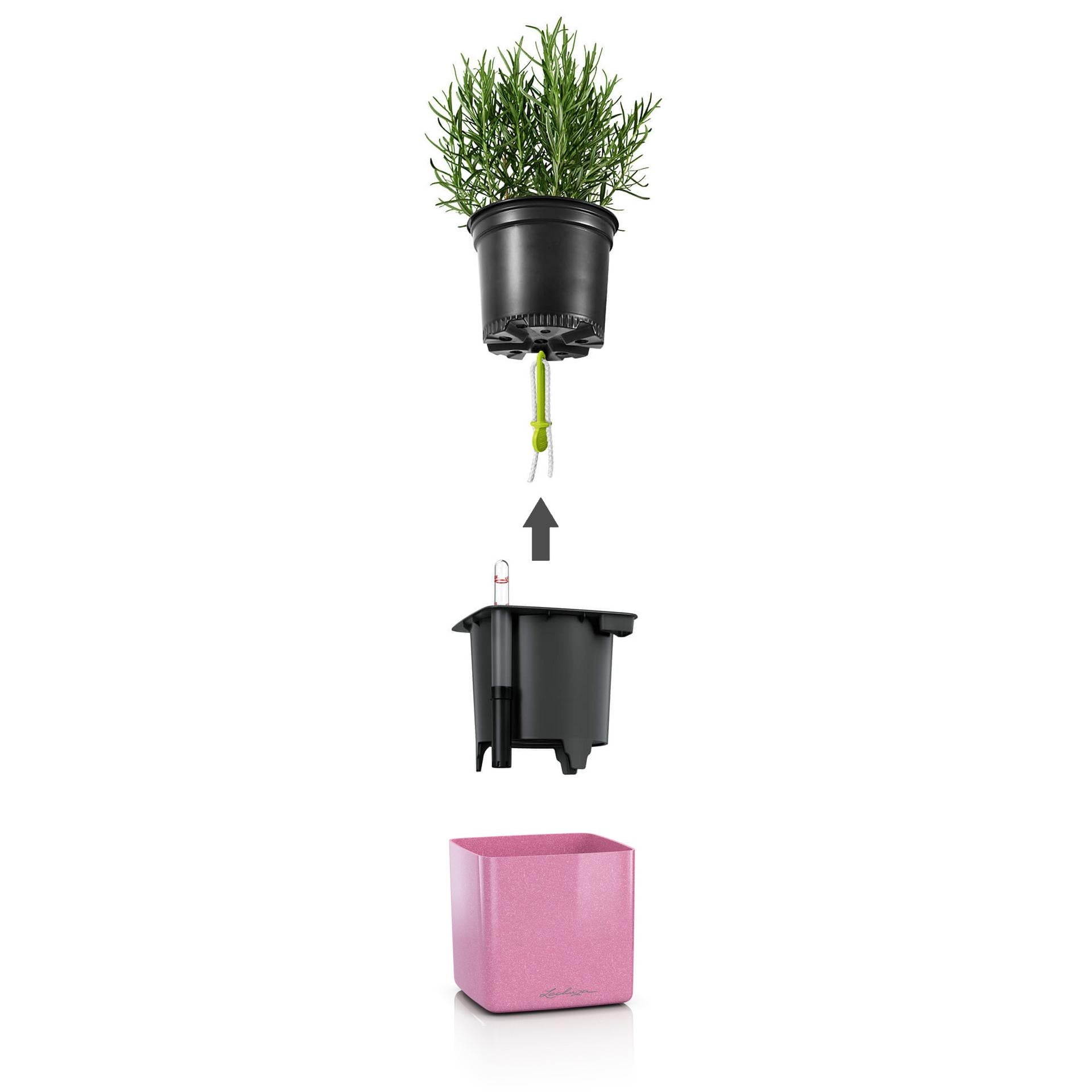 CUBE Glossy Kiss: Sweet like candy Delicate pastel shades are not only the trend on catwalks, but are also increasingly spreading their unobtrusive charm in the living room. The light candy colours make numerous style combinations possible while remaining discreet and conjuring up a modern look. The elegant cubes are given an extra portion of style and glamour by the brilliant glitter effect of the lacquered surface. The special editionCUBE Glossy Kissbrings the fashion highlight of the season to your home in the original LECHUZA design. Three soft colours set dream-like accents and offer a unique frame for all kinds of plants and, with their high-gloss surface and sparkling glitter effect, they are a stylish must-have!