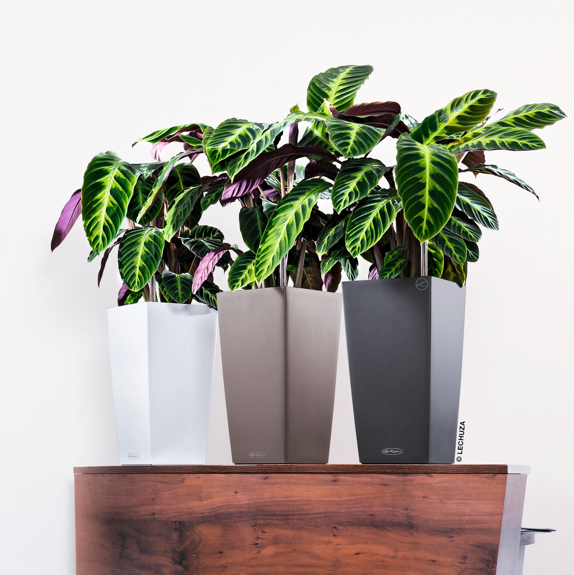 The planter's water-level indicator, which shows when the reservoir needs to be refilled, allows easy monitoring of the water reservoir levels, taking the guesswork out of plant care. Also included with this planter is LECHUZA's specially-formulated plant substrate, LECHUZA-PON which separates your potting soil from the water reservoir, aerates the roots, provides your plants with nutrition and helps regulate the water supplied to your plant. As an indoor and outdoor planter, the CUBICO Color is outfitted with a drainage plug to allow for the removal of excess rainwater when installed outdoors. This feature makes the CUBICO Color ideal for annuals, blooming plants and foliage.