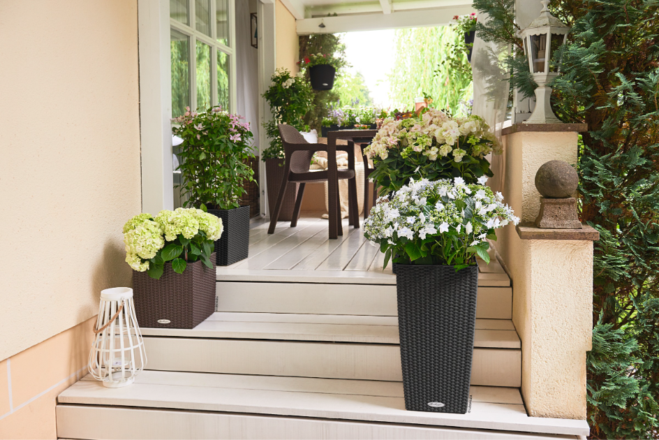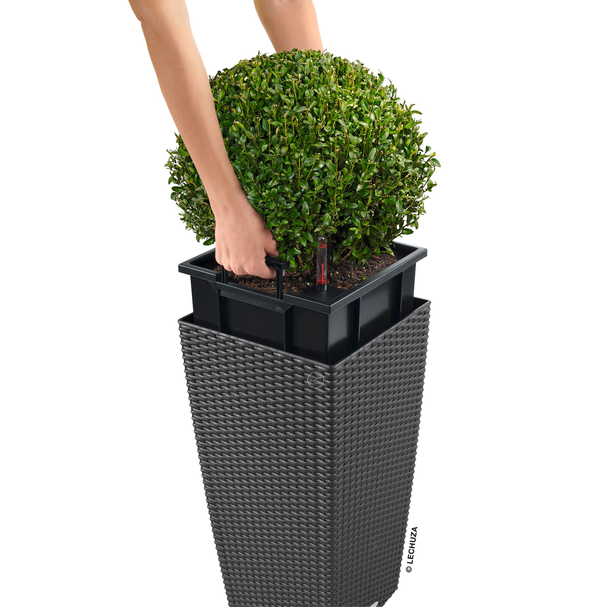 The fine wicker structure of the planters from the Cottage Collection offers a wide range of applications on the terrace or in the garden. With the original LECHUZA self-watering system, the removable plant insert, the integrated overflow function and the robust surfaces, the Cottage Collection planters are ideal partners for any outdoor garden season. The colour-neutral, removable plant inserts can be exchanged with all CUBICO models of the same size.