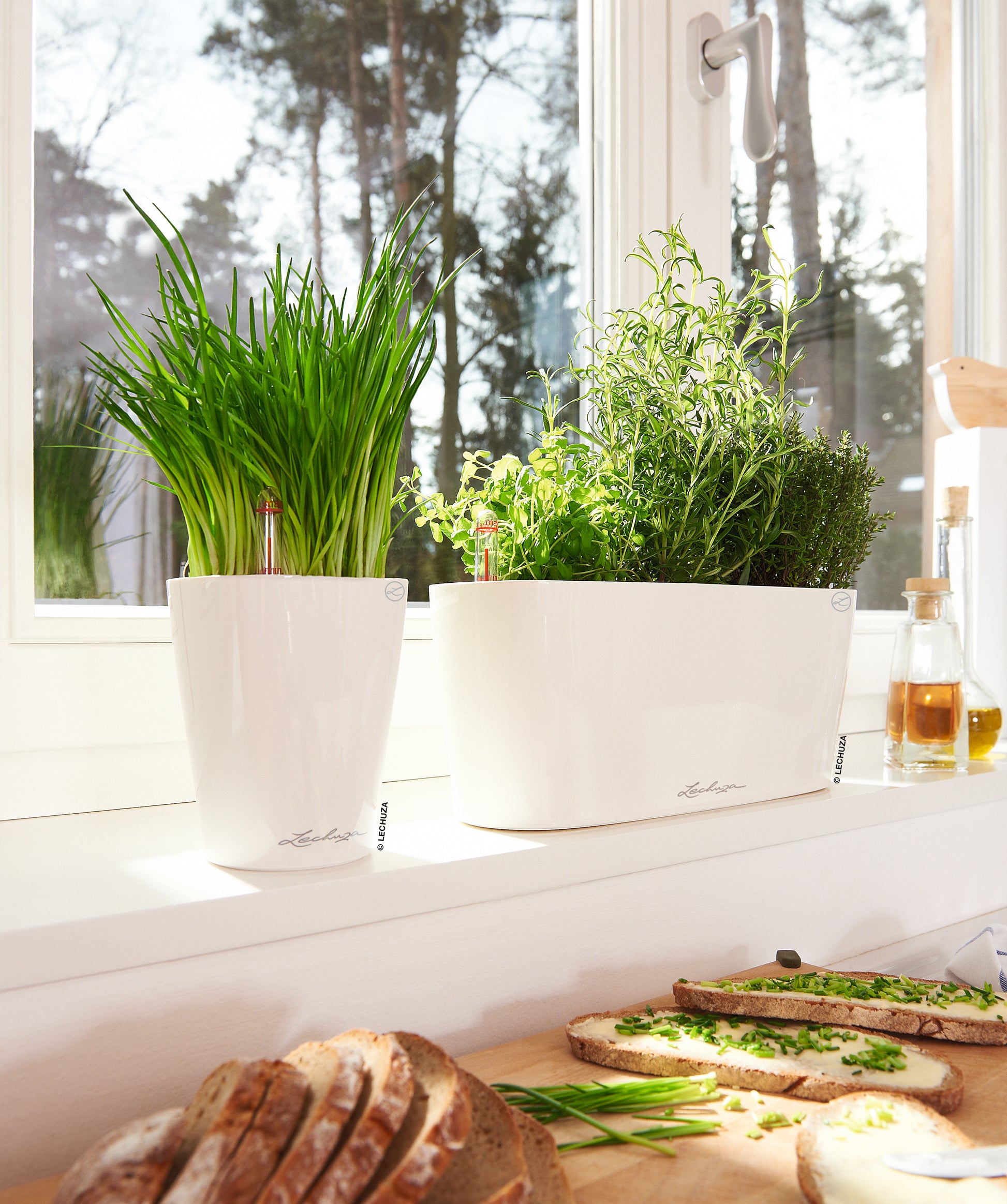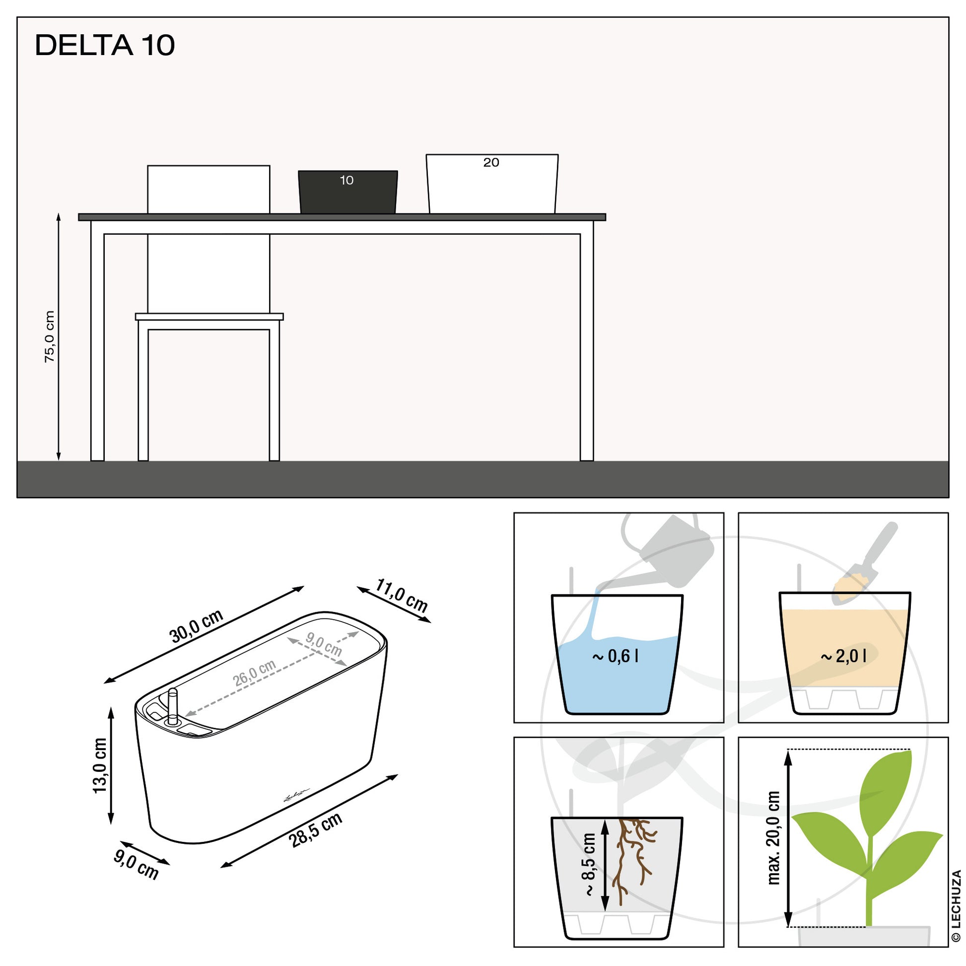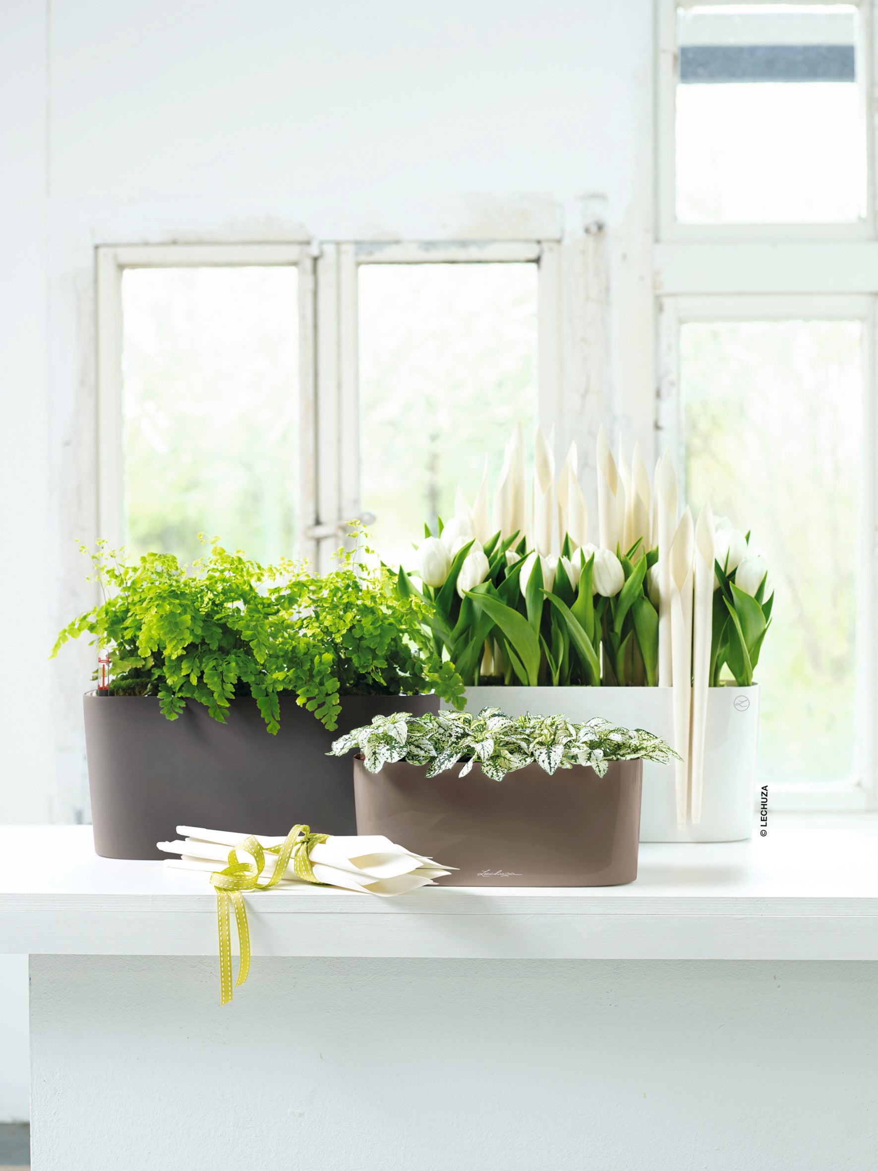 The DELTA 10 planters offer plants plenty of space in a small space. On narrow window sills, sideboards or as an beautiful decoration on the dinner table, the slender planters set green and flowering plants perfectly into a space. With their rounded, slender shape, they mesh perfectly even on small surfaces and, in five harmonious colour shades, they also blend into existing decoration concepts.