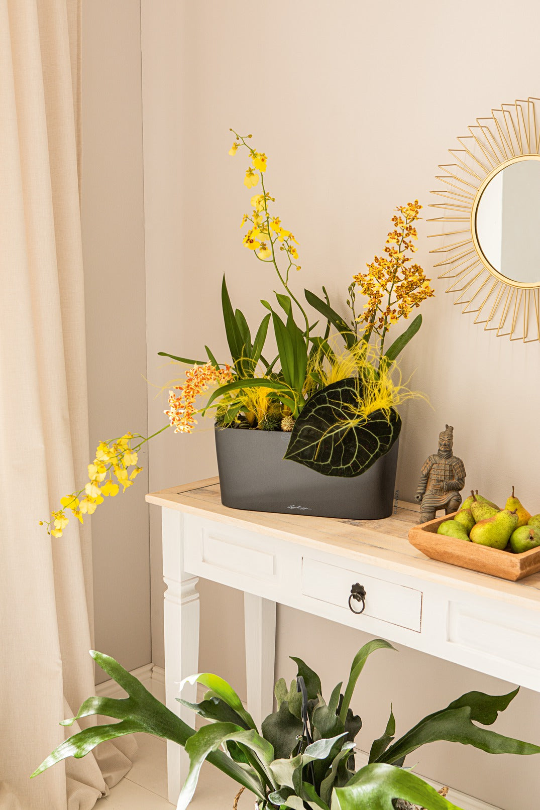 Thanks to the plant insert, the planting can be changed quickly and effortlessly and can be rearranged in a flash for seasonal occasions.