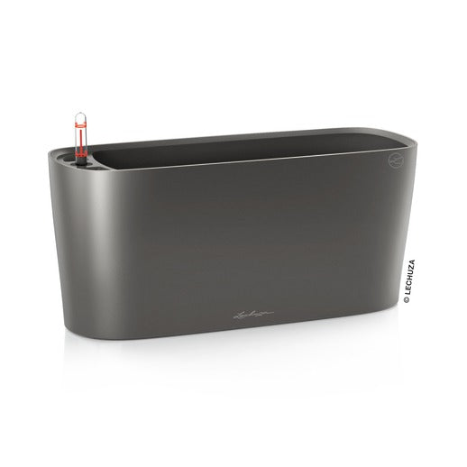 The DELTA 20 planters offer plants plenty of space in a small space. On narrow window sills, sideboards or as an beautiful decoration on the dinner table, the slender planters set green and flowering plants perfectly into a space. With their rounded, slender shape, they mesh perfectly even on small surfaces and, in five harmonious colour shades, they also blend into existing decoration concepts.