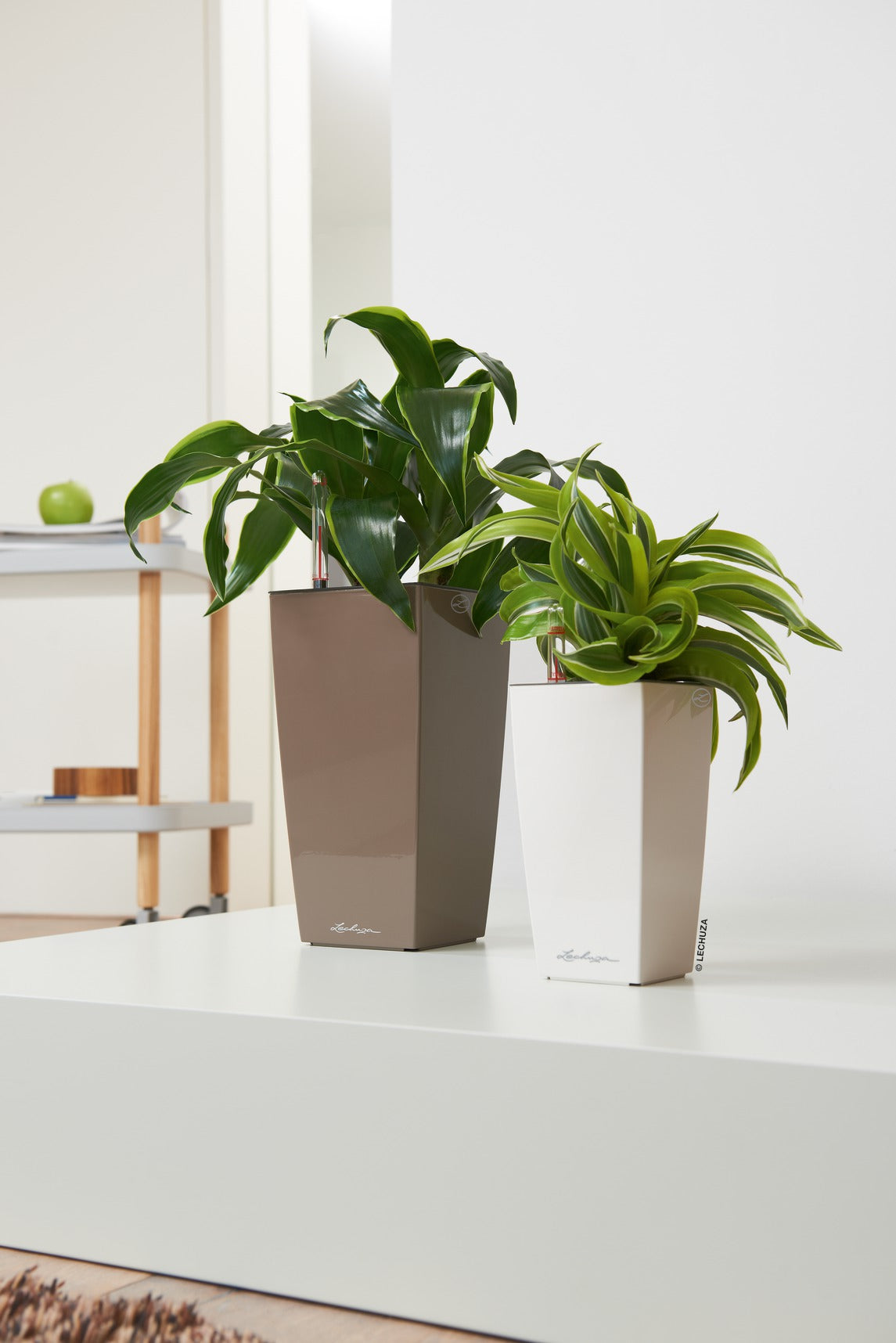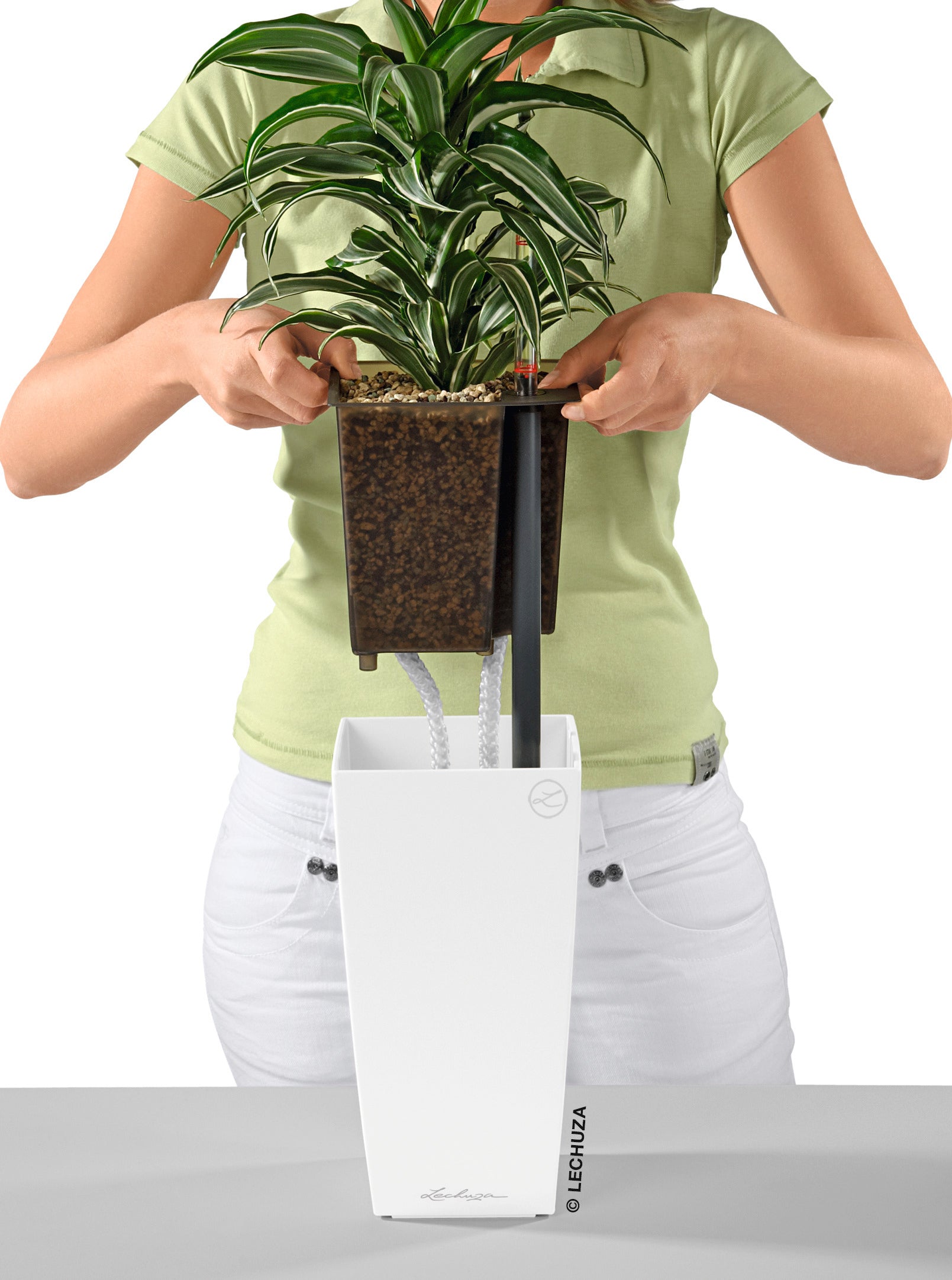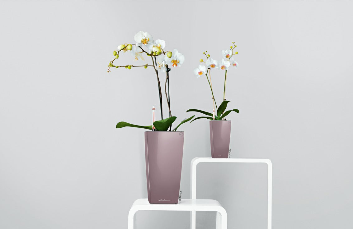 The MAXI-CUBI self-watering planter's elegant design elevates your plants. This versatile table top planter is perfect for foliage plants, or blooming plants, such as orchids. Like most LECHUZA planters, the MAXI-CUBI comes equipped with a signature water reservoir that supplies water to your plants as needed. Users can easily monitor their water reservoir levels with the planter's water-level indicator, which shows when the reservoir needs to be refilled, taking the guesswork out of plant care and extending time between watering. Also included is LECHUZA's specially-formulated plant substrate, LECHUZA PON, which aerates the roots, provides your plants with nutrition, and helps regulate the supply of water to your plants along with a wick system. Recommended for indoors use, the MAXI-CUBI is outfitted with a special liner that can be lifted completely out of the planter so you can easily transport it to wash any dust off your plants or trim the roots.